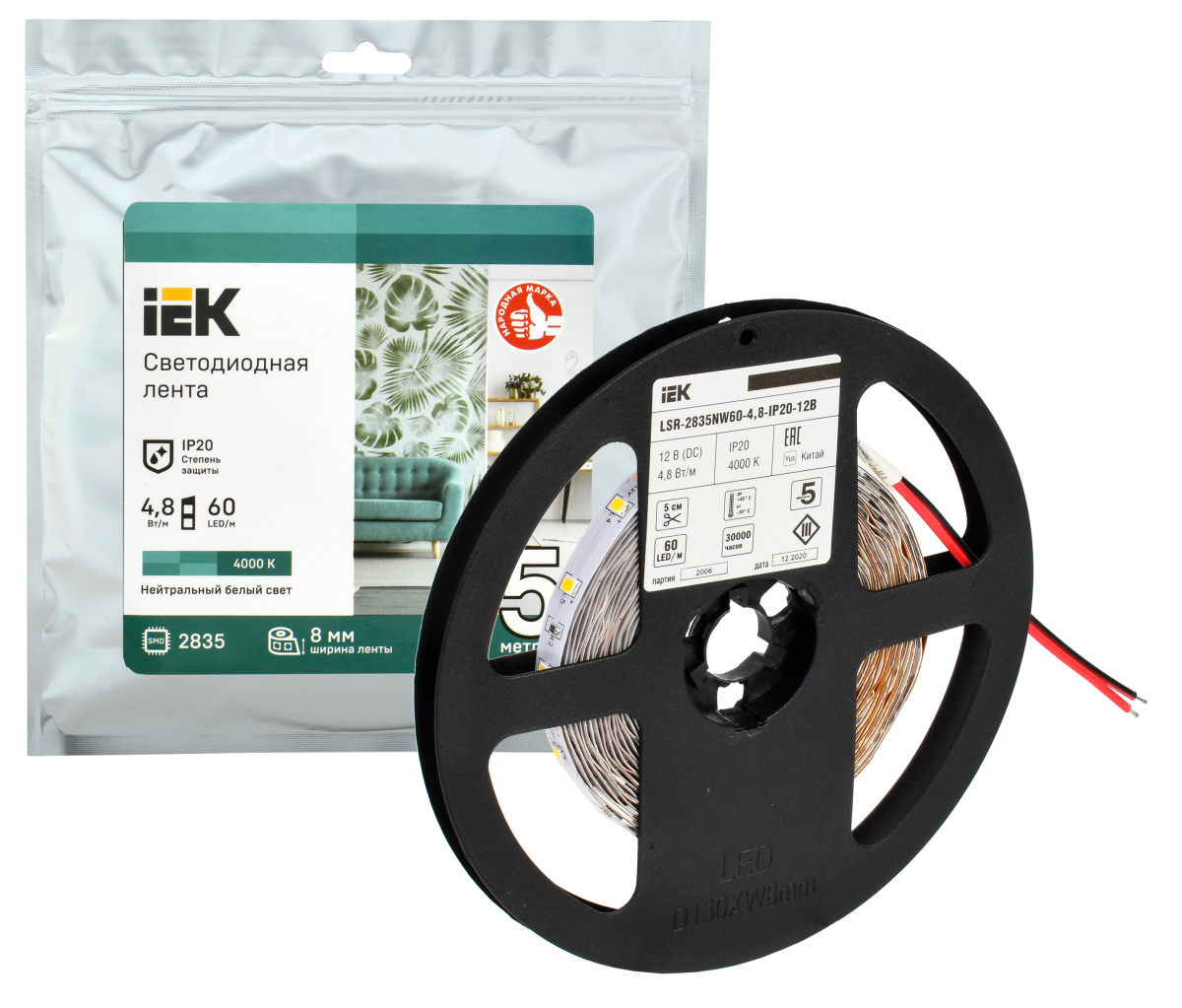 Купить Лента светодиодная 5м LSR-2835NW60-4,8-IP20-12В | код LSR1-0-060-20-3-05 | IEK | Магазин электрики - электрооборудование от разных производителей.