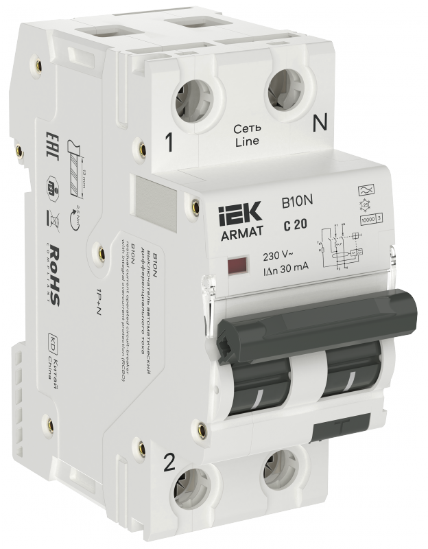 ARMAT АВДТ B10N 1P+NP C20 30мА тип A (36мм) IEK | код AR-B10N-1N-C020A030 | IEK