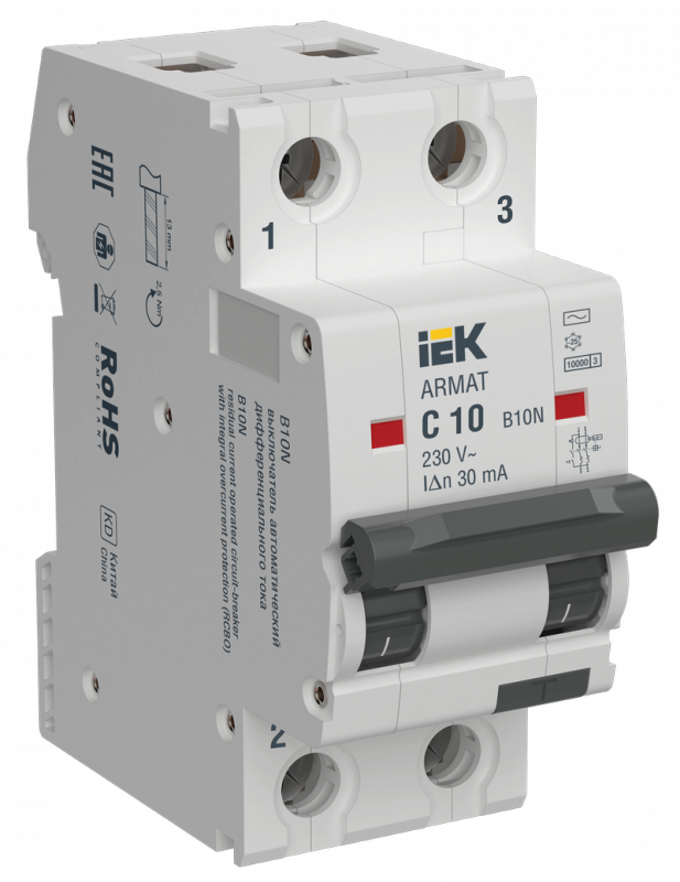 ARMAT АВДТ B10N 2P C10 30мА тип AC IEK | код AR-B10N-2-C010C030 | IEK