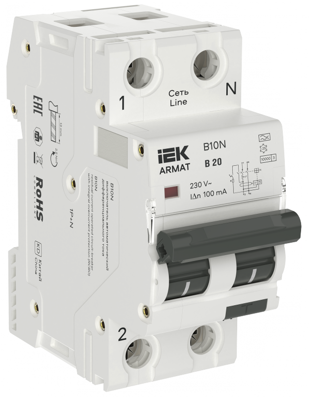 ARMAT АВДТ B10N 1P+NP B20 100мА тип A (36мм) IEK | код AR-B10N-1N-B020A100 | IEK