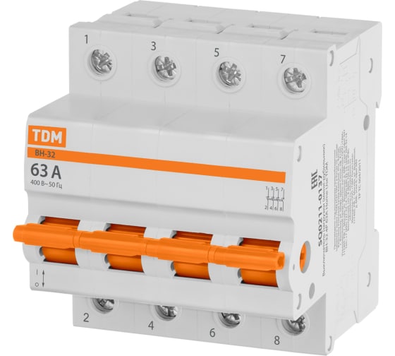 Выключатель нагрузки (мини-рубильник) ВН-32 4P 63A Home Use TDM | код SQ0211-0137 | TDM