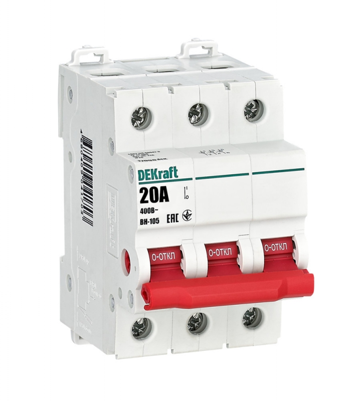 Выключатель-разъединитель 3Р 20А ВН-105 | код 17090DEK | DEKraft