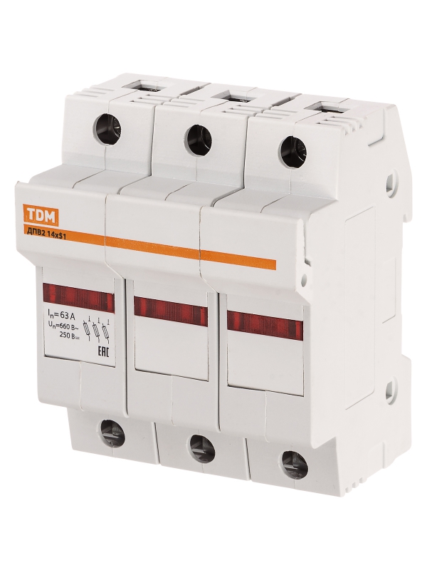 Держатель плавких вставок ДПВ2 14х51 3П TDM | код SQ0216-0019 | TDM