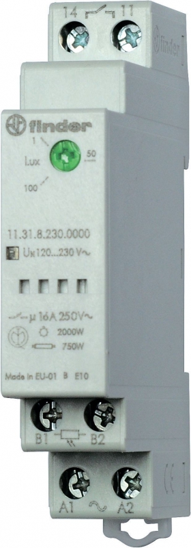 Фотореле модульное с фотоэлементом 011.03, монтаж на рейку 35мм, 1NO 16A, питание 230В АC, настройка чувствит. 1…100люкс, ширина 17.5мм, степень защиты: фотореле IP20, фотоэлемент IP54, упаковка 1шт. | код 113182300000POS | FINDER