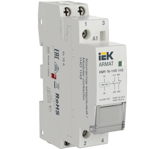 ARMAT Контактор модульный KMR 16А 230В AC 1НО 1НЗ IEK | код AR-KMR10-016-11-230 | IEK