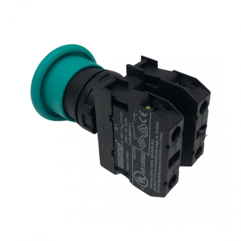 B102MY Кнопка Грибок без фиксации зеленая (1НО+1НЗ) | код B102MY | EMAS