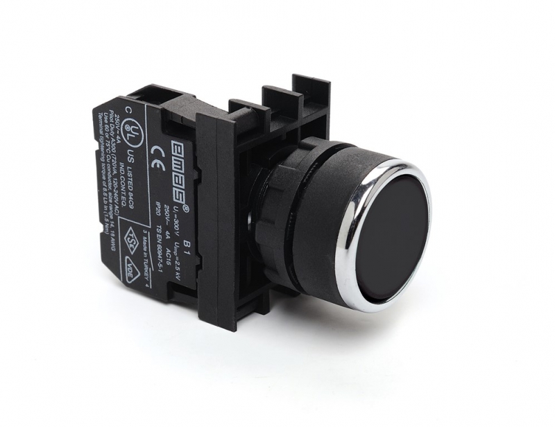 Кнопка круглая без фиксации, черная (1НО), B100DH | код B100DH | EMAS