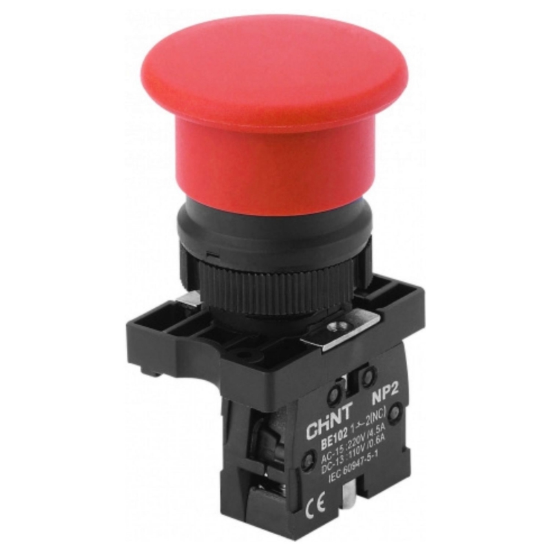 Кнопка управления Грибок ?40мм(2)с самовозвратом NP2-EC42 без подсветки красная 1НЗ IP40 (R)(CHINT) | код 573896 | CHINT