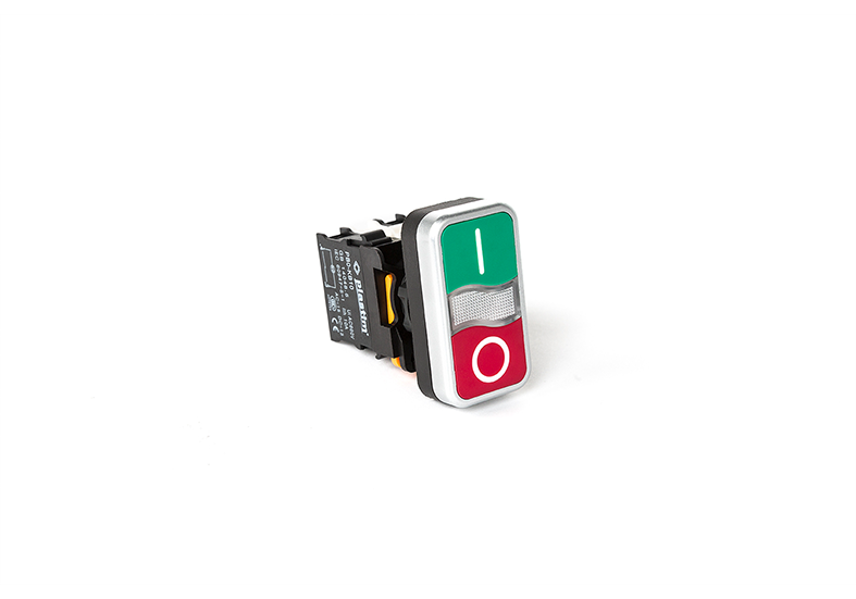 PB0-AW734M5 Двойная кнопка 1NO + 1NC, с подсветкой, AC 230 В. (Красный - Зеленый) | код PB0-AW734M5 | Plastim