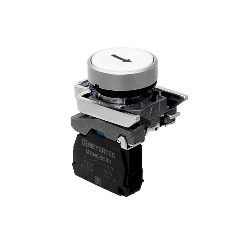 Кнопка плоская белая, маркировка стрелка вверх, 1NO, IP65, металл MTB4-BA12551 | код 137121 | MEYERTEC