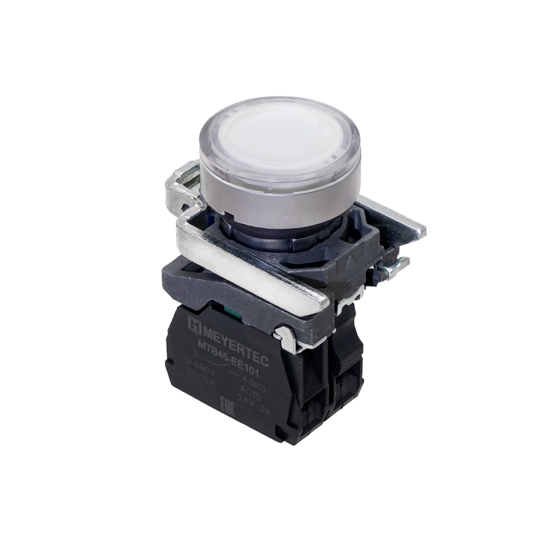 Кнопка белая с подсветкой, 1NO, 24V AC/DC, IP65, металл MTB4-BW31711 | код 137164 | MEYERTEC