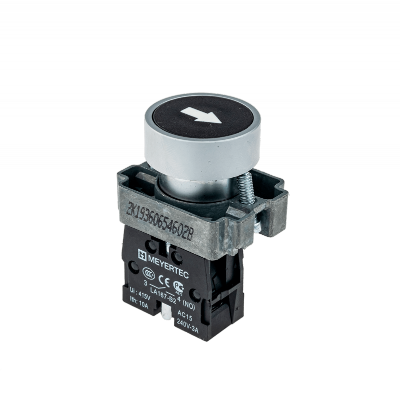 Кнопка плоская с маркировкой, черная, знак стрелка вверх, 1NO, мет. MTB2-BAZ11335 | код 58167 | MEYERTEC