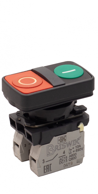 Выключатель Briswik КМЕ 8620м зел-красн IP65 УХЛ3 10А 2но+0нз | код aB-FB-5Ai-0622 | Briswik