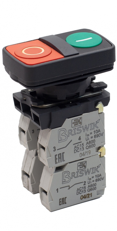 Выключатель Briswik КМЕ 8622м зел-красн IP65 УХЛ3 10А 2но+2нз | код aB-FB-5Ai-0643 | Briswik