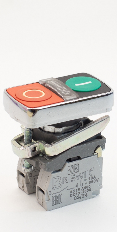 Выключатель Briswik КМЕ 8602м -ЛС 24В зел-красн IP65 УХЛ3 10А 0но+2нз | код aD-GB-5Ai-3623 | Briswik