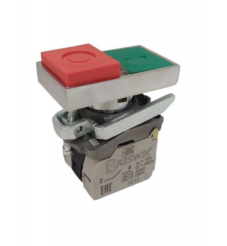Выключатель Briswik КМЕ 9711м -ЛС 220В зел-красн IP66 УХЛ3 10А 1но+1нз | код aD-GC-6Ai-7621 | Briswik