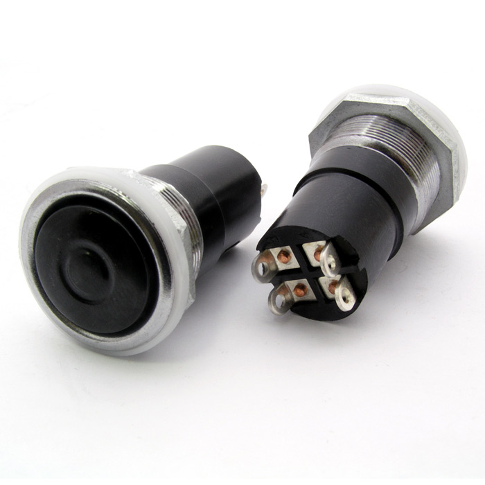 Кнопочный переключатель RUICHI К4-1, OFF-(ON), SPST, без фиксации, 4Р, 4 А, 250 В, 10 мОм, толкатель коричневый | код 69674 | Ruichi