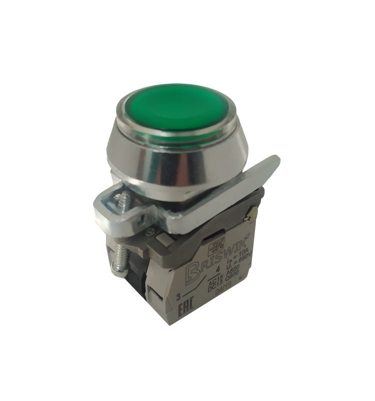 Выключатель Briswik КЕ 171/4м -ЛС 220В зеленый 1но+0нз цилиндр с подсветкой IP66 УХЛ2 10А | код aT-EB-6Ai-7311 | Briswik