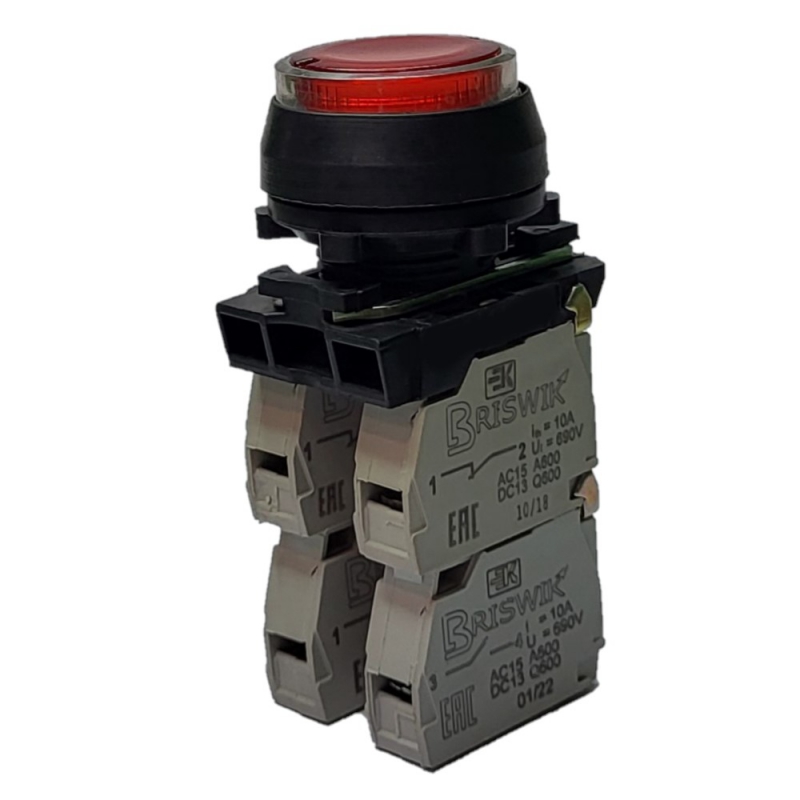 Выключатель Briswik КЕ 172/7м -Л 220В красный 2но+1нз цилиндр с подсветкой IP66 УХЛ2 10А | код aZ-EB-6Ai-7232 | Briswik