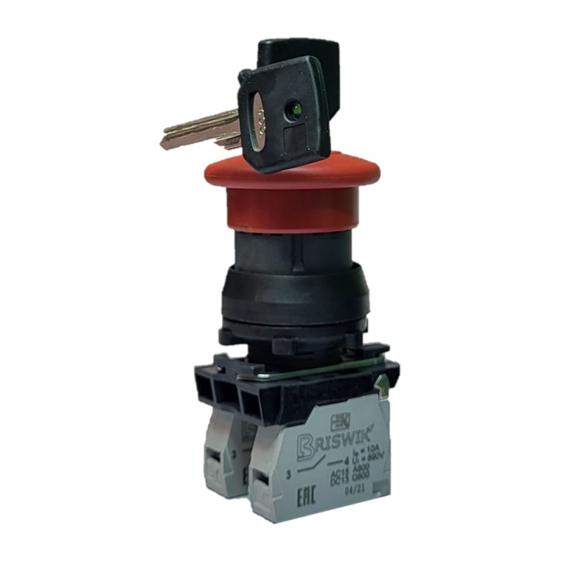 Выключатель Briswik КЕ 211/2м красный 1но+1нз Гриб Ключ с фикс IP66 УХЛ2 10А | код aZ-PV-6Ai-0221 | Briswik