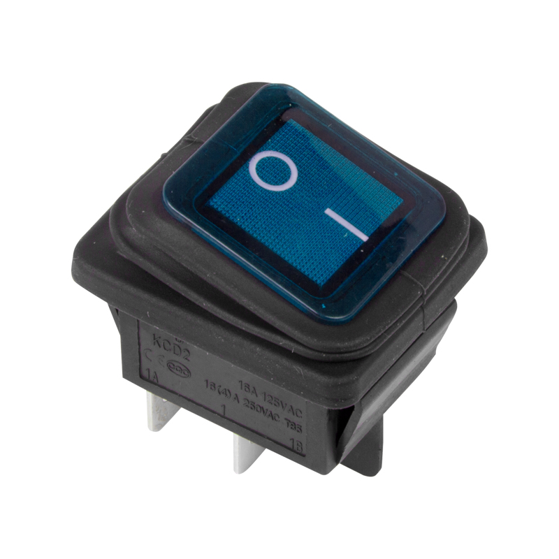 Выключатель клавишный 250V 15А (4с) ON-OFF синий с подсветкой ВЛАГОЗАЩИТА REXANT | код 36-2361 | REXANT