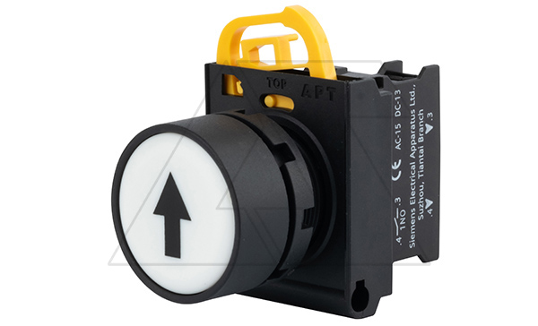 Кнопка плоская PB3E, белая Черная стрелка, без фиксации, без подсветки, 1NO, 6A 230VAC/24VDC, 22mm, IP65 | код PB3E-FM0S10S99/W00 | АРТ