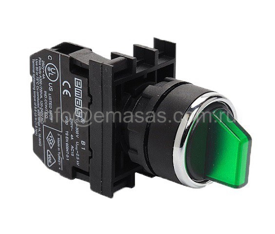 B130SL20Y Переключатель 0-1 с фиксацией зеленый (1НО) с блок-контактом подсветки без лампы | код B130SL20Y| EMAS