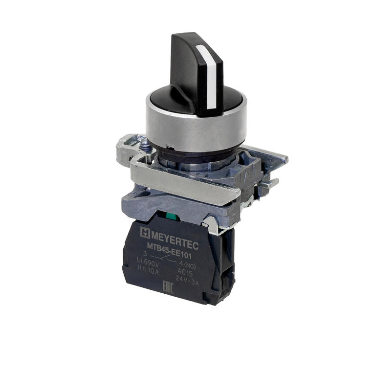 Переключатель на 2 положения с фиксацией, короткая ручка, 1NO, IP65, металл MTB4-BD21 | код 137143 | MEYERTEC