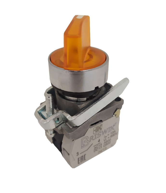 Переключатель Briswik КПЕ 1101 -РЛС 220В желтый IP40 УХЛ3 10А 0но+1нз | код aD-XB-0Ai-7412 | Briswik