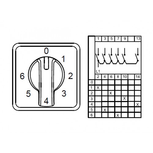 800 285, CS040111M, Многоступенчатые переключатели - 1 полюс, 0-6 40 A 45градус. | код 0.0.0.8.00285 | KLEMSAN