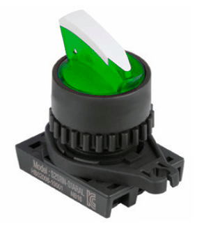 Головка переключателя S2SRN-L2G, с длиной ручкой тип sharck под подсветку, цвет зеленый, 2-х позиционный 900 с самовозвратом, монтажное отверстие ?22/25мм | код A8026-A5550009537 | РЕЛЕ И АВТОМАТИКА