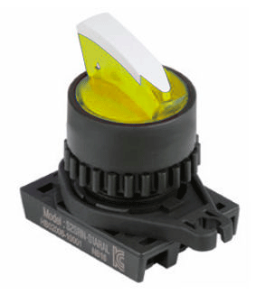 Головка переключателя S2SRN-L7Y, с короткой ручкой тип sharck под подсветку, цвет желтый, 3-х позиционный 900 с фиксацией, монтажное отверстие ?22/25мм | код A8026-A5550003861 | РЕЛЕ И АВТОМАТИКА