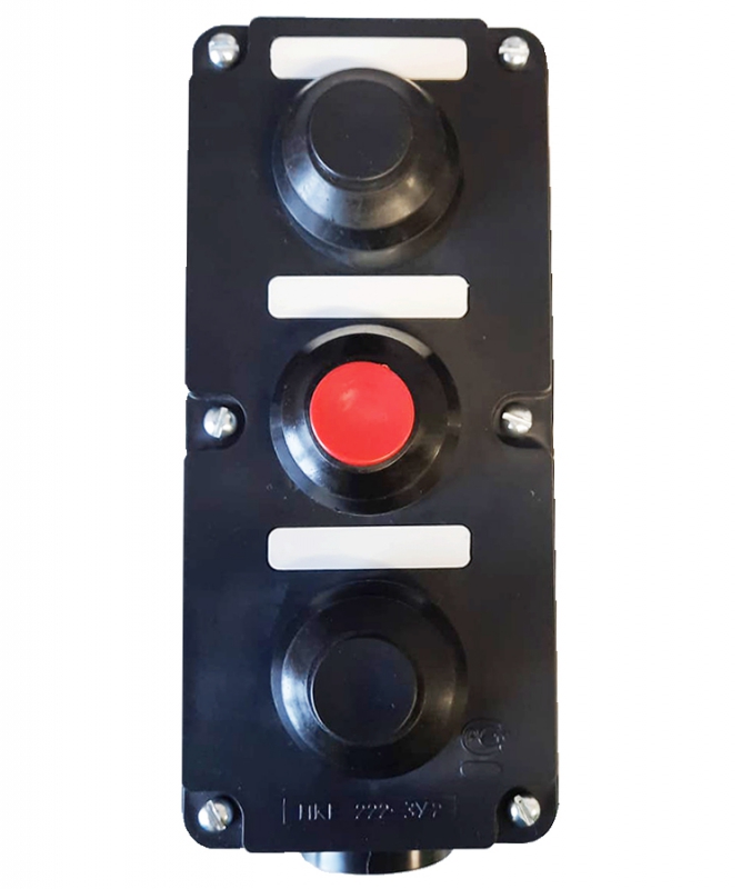 Пост управления ПКЕ 222-3 У2, 10А, 660В, 3 элемента, чёрный и красный цилиндр (с протектором), накладной, IP54 (ЭТ) | код ET012027 | Электротехник