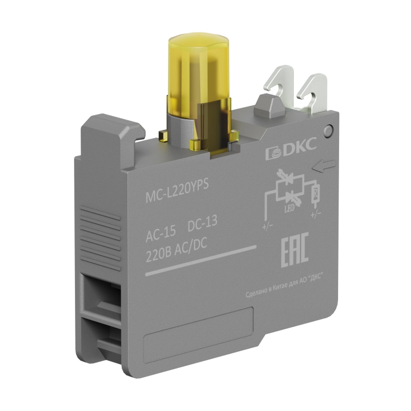 Контактный блок с клеммными зажимами под винт со светодиодом на 220В, жёлтый | код MC-L220YPS | DKC