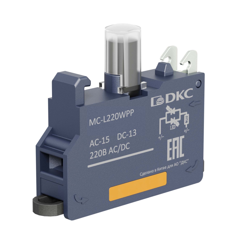 Контактный блок с клеммным безвинтовым зажимом со светодиодом на 220В, белый | код MC-L220WPP | DKC