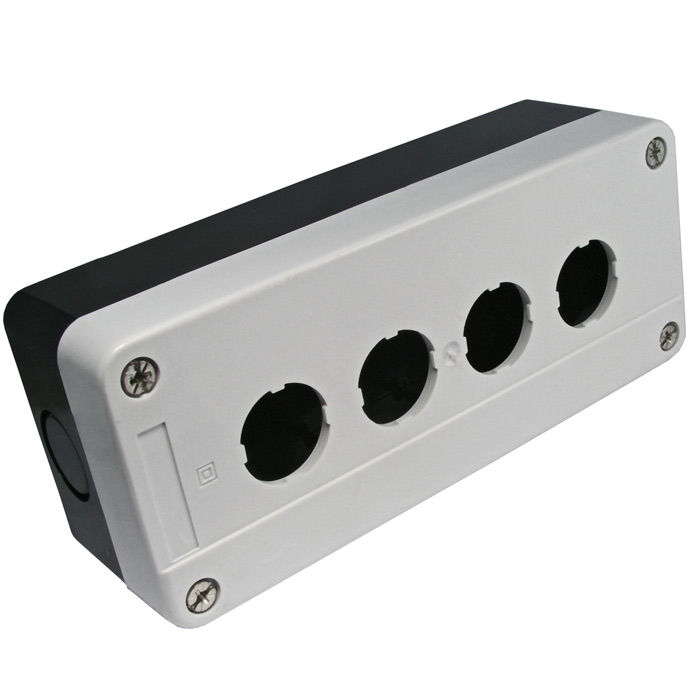 Кнопочный пост RUICHI GB2-B04, 4-х местный, IP40/IP65, 10 А, 68х180х51 мм, открытой установки, черный/серый | код 66315 | Ruichi