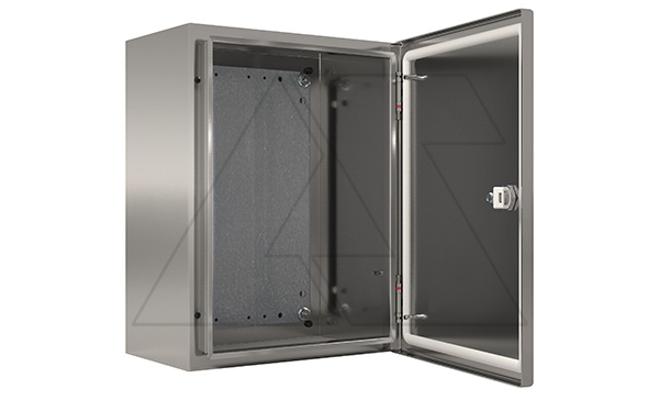 Щит моноблочный 500x500x200мм (ВxШxГ) из нерж. стали навесной с монт. панелью однодверный, 1 язычковый замок, дно глухое, IP66 | код EC050520X | ETA