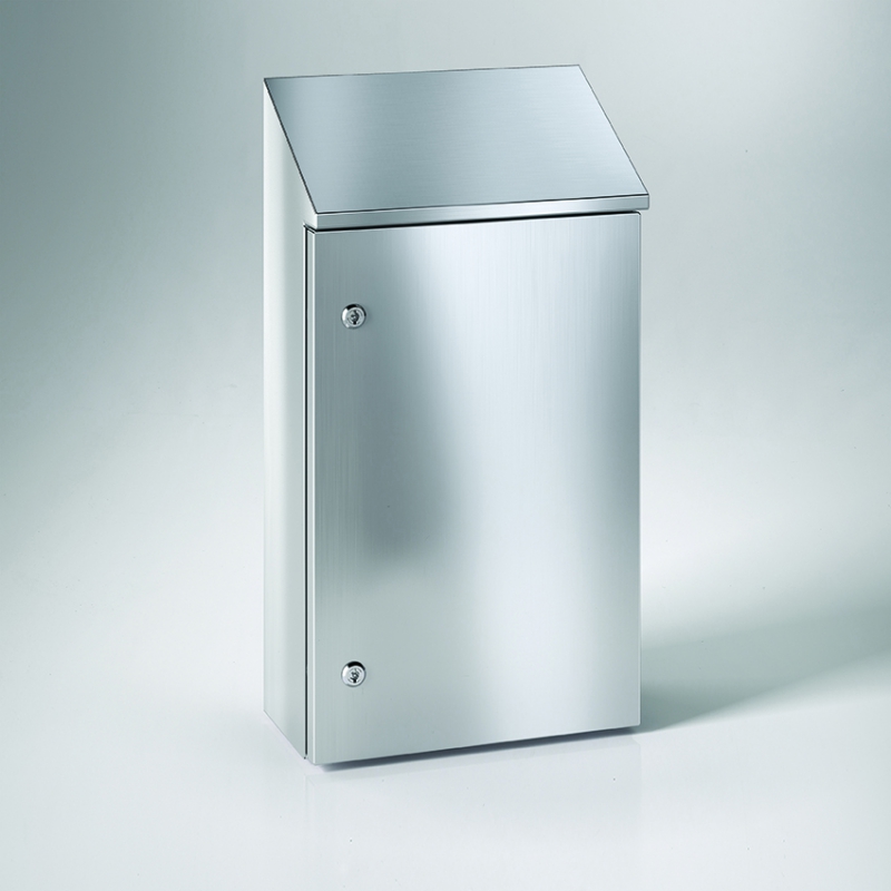 Щит ECOR моноблок, скошен. крыша 500x400x150мм (ВхШхГ) нерж. сталь навесной, монтаж. панель, 1 глухая дверь, 1 замок, 1 пластина кабел. ввода, IP66 | код EC040515X.T | ETA