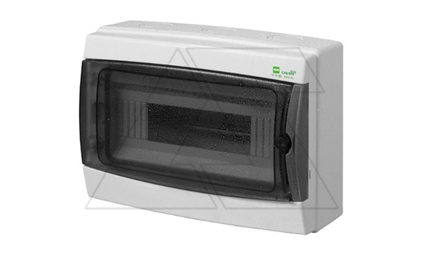 Щит навесной GALANT 1x12M, N/PE 2x 8x16+6x10mm2, дымчатая пласт. дверь, светло-серый RAL7035, 217x307x117mm, IP65 | код 1603-01 | Elektro-plast Nasielsk