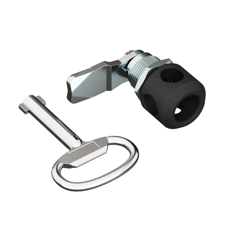 Поворотный замок для установки навесного замка с личинкой под двойную бородку 3 мм для навесных корпусов, металл, черный, ключ в комплекте | код R5CE222 | DKC