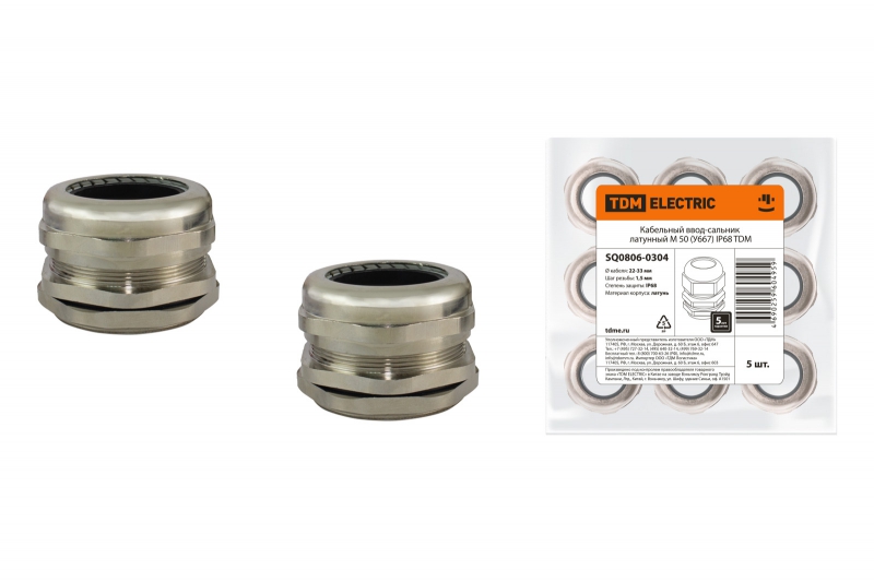 Кабельный ввод-сальник латунный М 50 (У667) IP68 TDM | код SQ0806-0304 | TDM