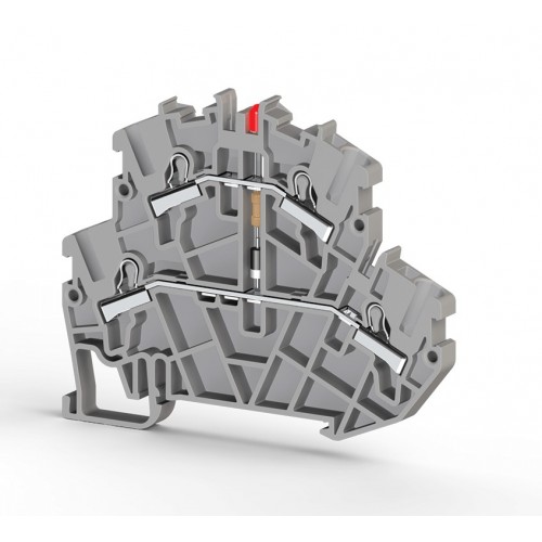 307 359, Клеммник пруж.быстрозажимной (Push in) 2-х ярусный, 2,5мм.кв., с индикацией 220VAC, (серый), PYK2,5-2FLD 220VAC | код 0.0.0.3.07359 | KLEMSAN