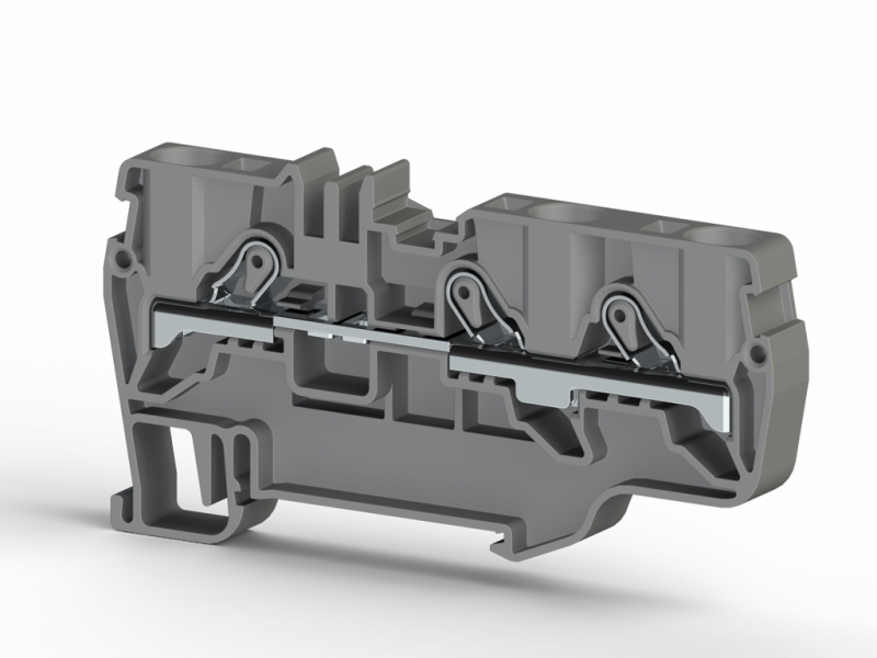 307 639, Клеммник пруж.быстрозажимной (Push in), 3-х выводной, 6мм.кв., (серый), PYK 6E | код 0.0.0.3.07639 | KLEMSAN