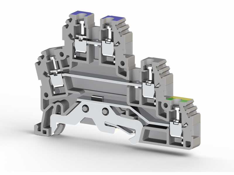 324 209T, Клеммник 2-х ярусный с контактом на рейку, 2,5мм.кв., (серый), PUK 2Т-1 | код 0.0.0.3.24209T | KLEMSAN