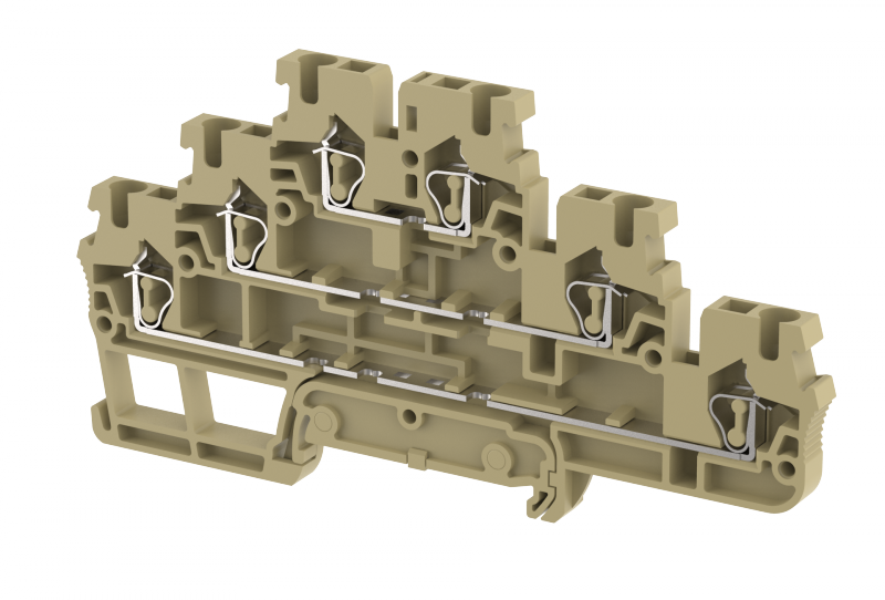 Клемма проходная пружинная 2,5 мм2, трехуровневая, на 6 подключения, хаки SQ2.5-3T-KHAKHI | код 2102030006 | Elmex