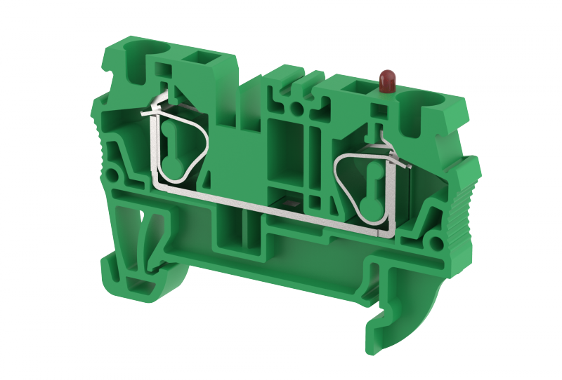 Клемма проходная пружинная 4 мм2, на 2 подключения, зеленая SQ4-GREEN | код 2103010003 | Elmex