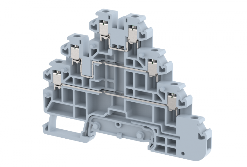 Клемма проходная винтовая 2,5 мм2, трехуровневая, на 6 подключений, синяя TQ2.5-3T+WOE-BLUE | код 1202540001 | Elmex