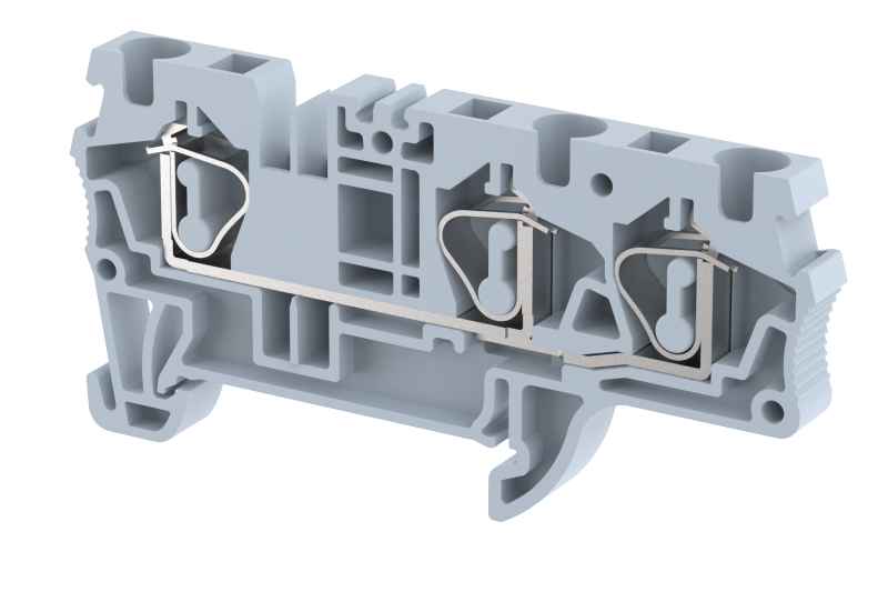 Клемма проходная пружинная 10 мм2, на 3 подключения, хаки SQ10-1X2-KHAKHI | код 2105050006 | Elmex