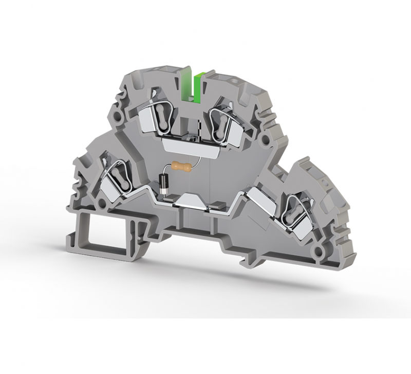 318 619, Клеммник 2-х ярусный пружинный, 4 мм.кв., с индикацией 110 VAC, (серый), YBK4-2 FLD 110VAC | код 0.0.0.3.18619 | KLEMSAN