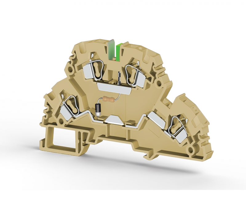 318 310, Клеммник 2-х ярусный пружинный, 4 мм.кв., с индикацией 24 VAC, (бежевый), YBK4-2 FLD 24VAC | код 0.0.0.3.18310 | KLEMSAN